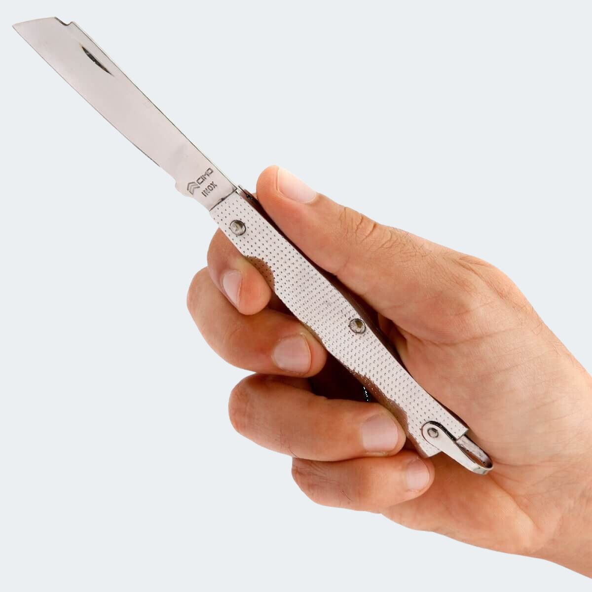 Todos os canivetes clássicos de inox da CIMO contam com afiação Hollow Grind, um tipo de desbaste côncavo que oferece cortes precisos e profundos. Esse padrão é especialmente eficiente para tarefas cotidianas, pois garante uma lâmina afiada por mais tempo e com excelente controle no uso.