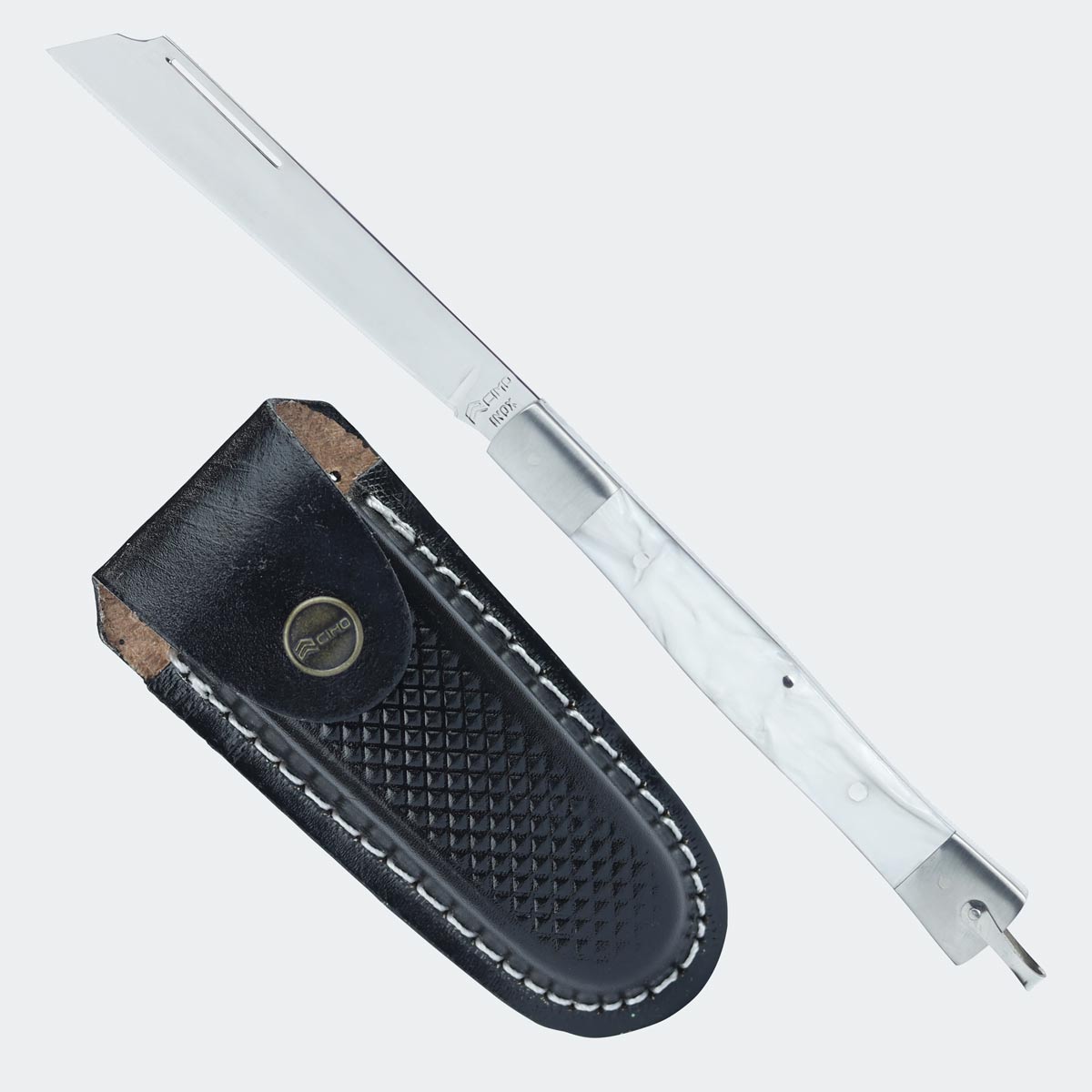 As bainhas dos canivetes da CIMO são feitas em couro resistente. Esse material proporciona durabilidade prolongada e um acabamento tradicional valorizado por colecionadores e usuários profissionais, assim como resistência adicional contra atritos e possíveis desgastes da lâmina.