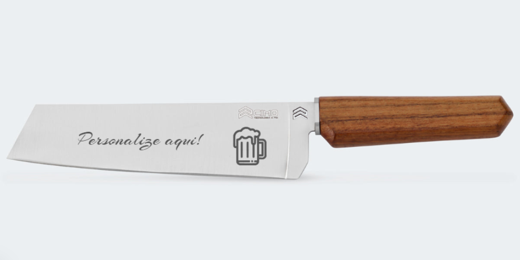 Para personalizar o seu CIMO, basta escolher o modelo que mais te chamou atenção, entrar na página do produto e selecionar a opção "personalize seu CIMO". Siga as instruções e conclua o pedido para receber em breve uma lâmina de alto nível funcional e estético, mas reforçada com uma gravação exclusiva para você!