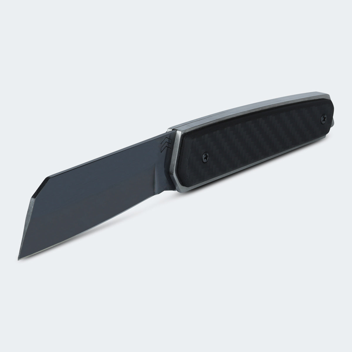 Lâmina em inox 420C , cabo em inox e fibra de carbono adicionamos um clip de bolso aliados com nossa tecnologia em titânio (BTi-Black Titânium) com isso a dureza superficial de todas as partes do canivete atigem a dureza da safira (3000 vickers). Ele foi feito para você utilizar no seu dia-a-dia pois com o revestimento em titânio aumenta a resistência para as situações mais extremas.