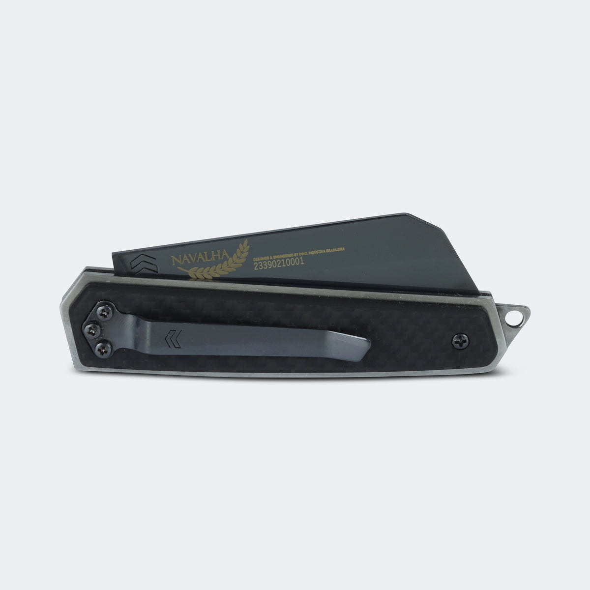 Canivete Cimo Navalha Black Titanium Cabo Fibra De Carbono Com Clip - NV59CLIP-FC-BTI