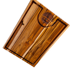 Ideal para cortes profissionais, a Tábua de Corte em Madeira Teca com Valeta Coletora mantém sua bancada limpa, evitando derramamentos. Com 50x30x2,5 cm, possui acabamento refinado e o logo exclusivo The Top Wood, garantindo autenticidade e sofisticação. Feita de madeira teca premium, é resistente e durável.