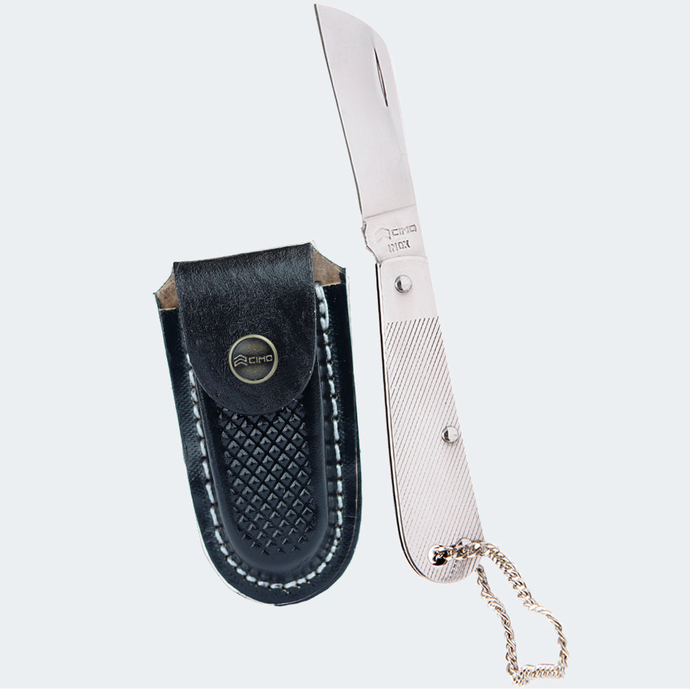 As bainhas dos canivetes da CIMO são feitas em couro resistente. Esse material proporciona durabilidade prolongada e um acabamento tradicional valorizado por colecionadores e usuários profissionais, assim como resistência adicional contra atritos e possíveis desgastes da lâmina.