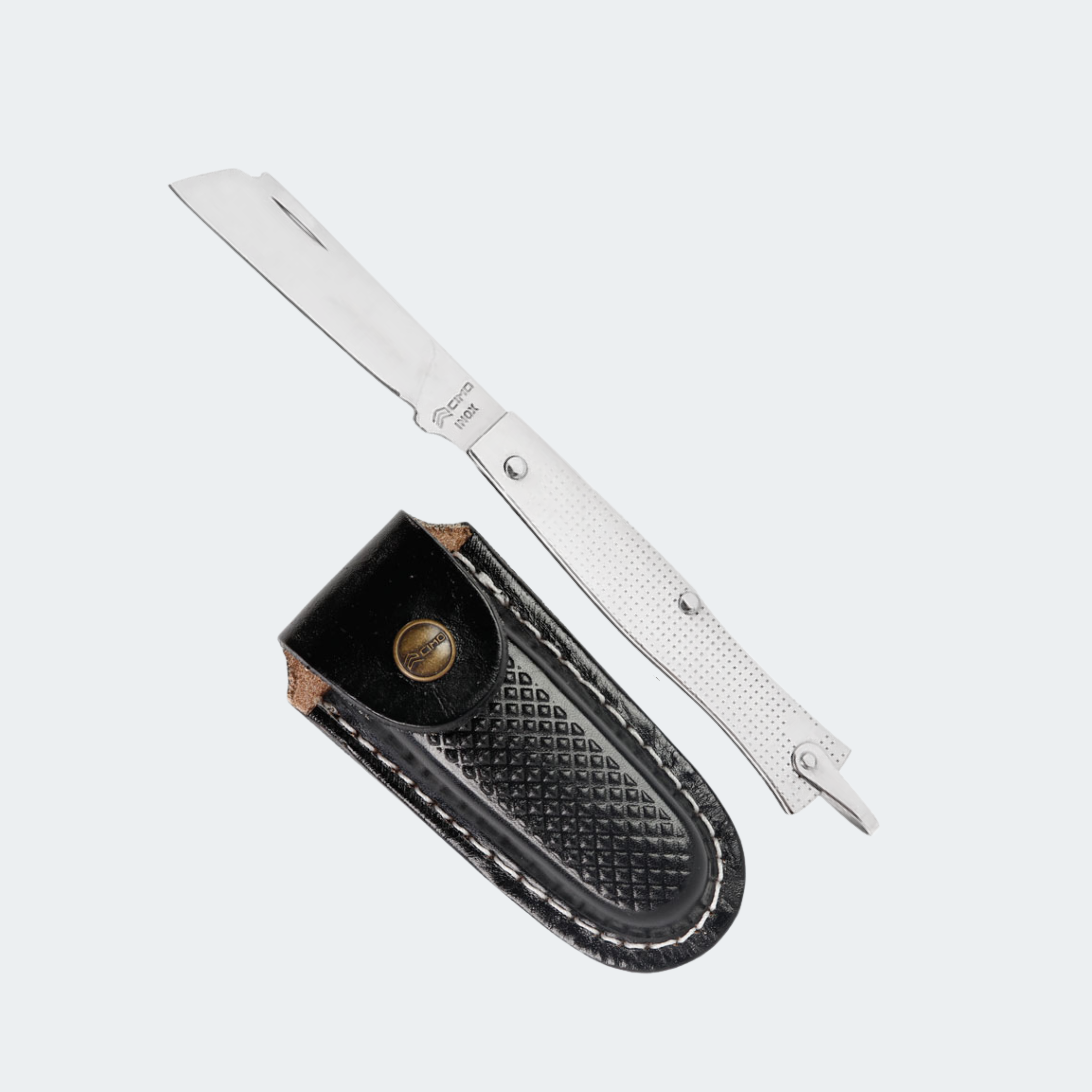 Canivete Cimo Inox Cabo Inox E Acrílico Preto Com Bainha - 320/7 I PT C/B