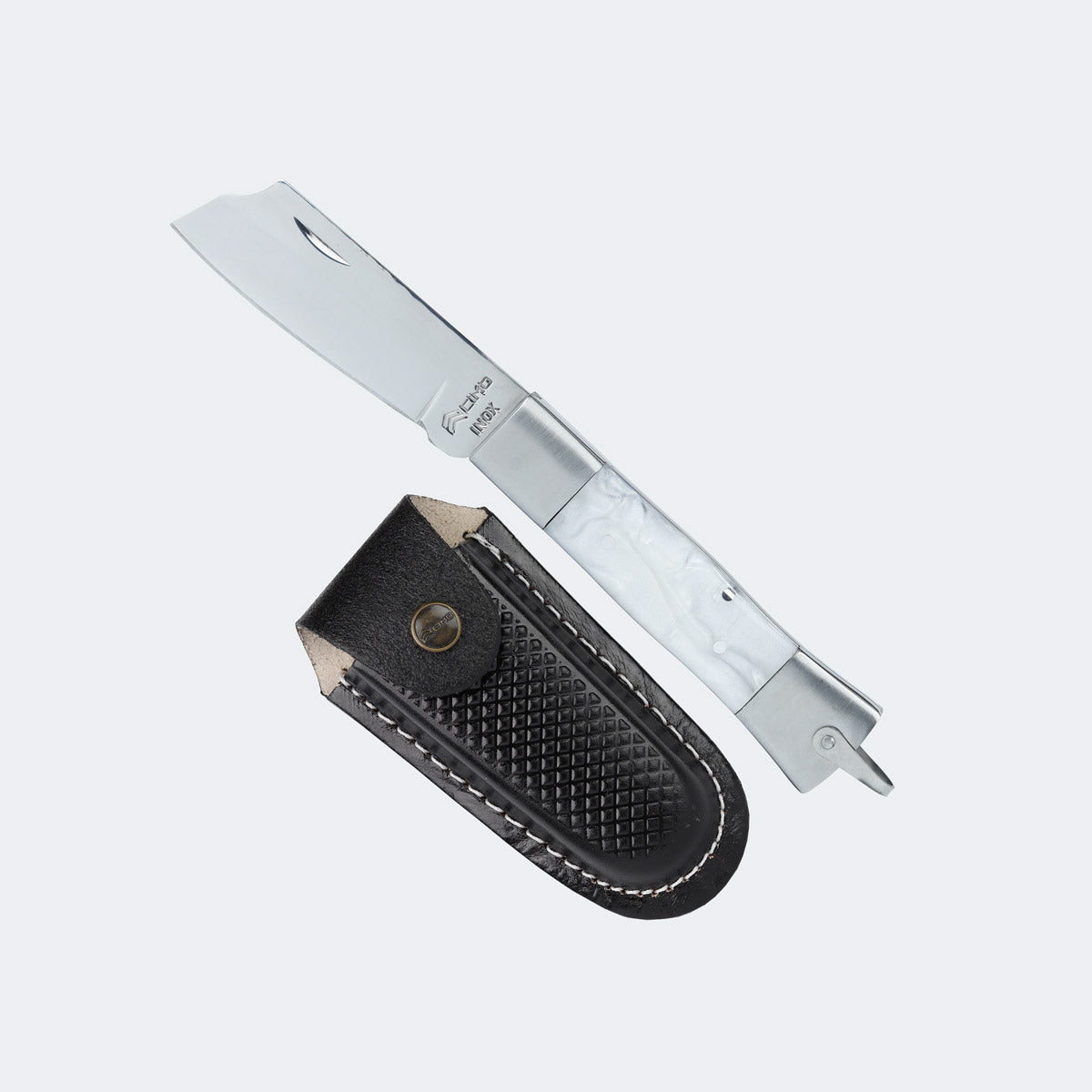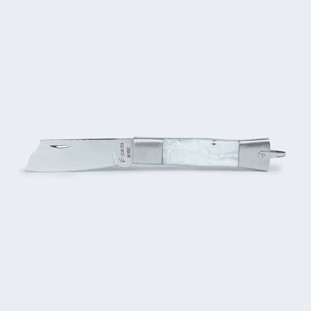 Canivete Cimo Inox Cabo Inox E Acrílico Branco Com Bainha - 320/7 I BC C/B