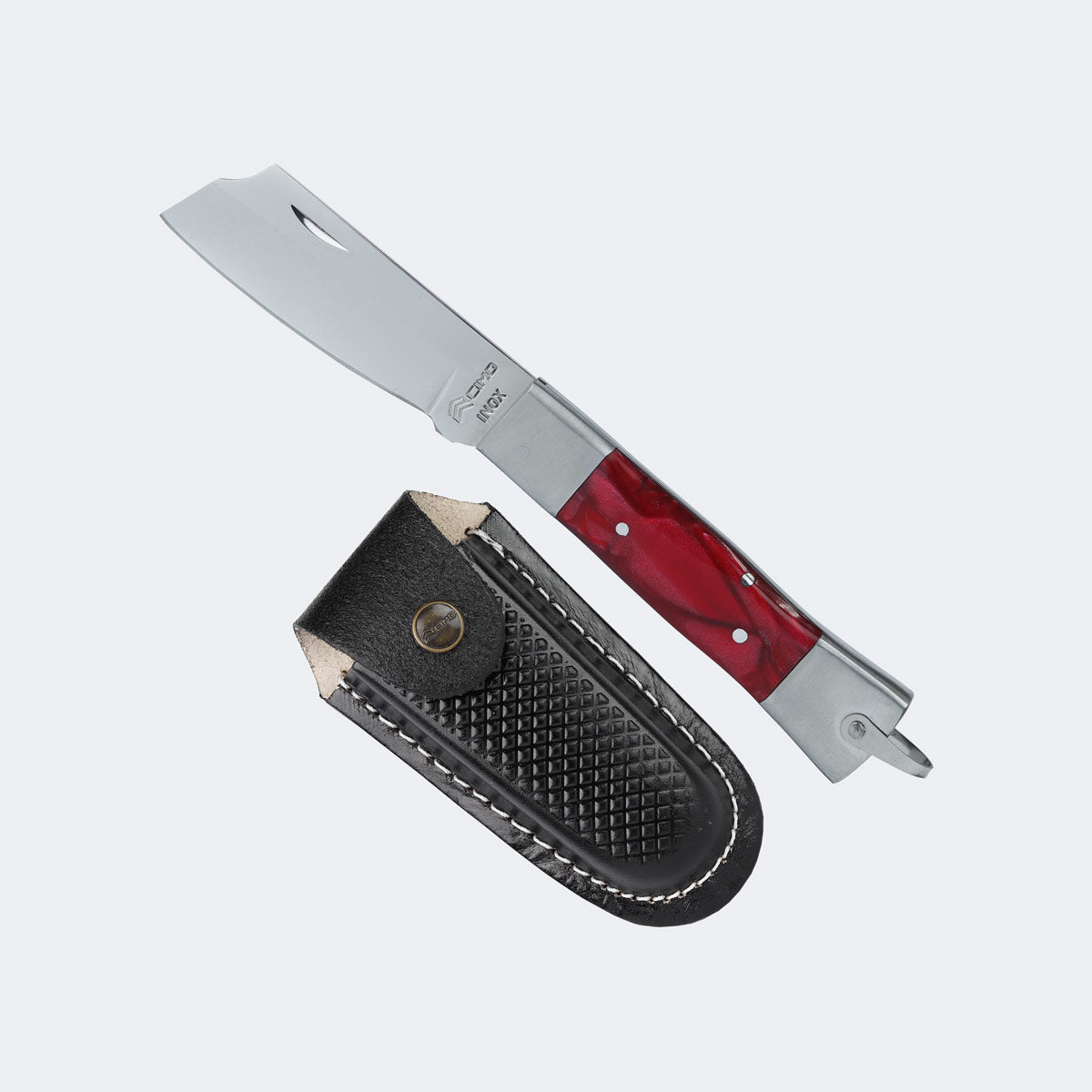 Canivete Cimo Inox Cabo Inox E Acrílico Vermelho Com Bainha - 320/7 I VM C/B