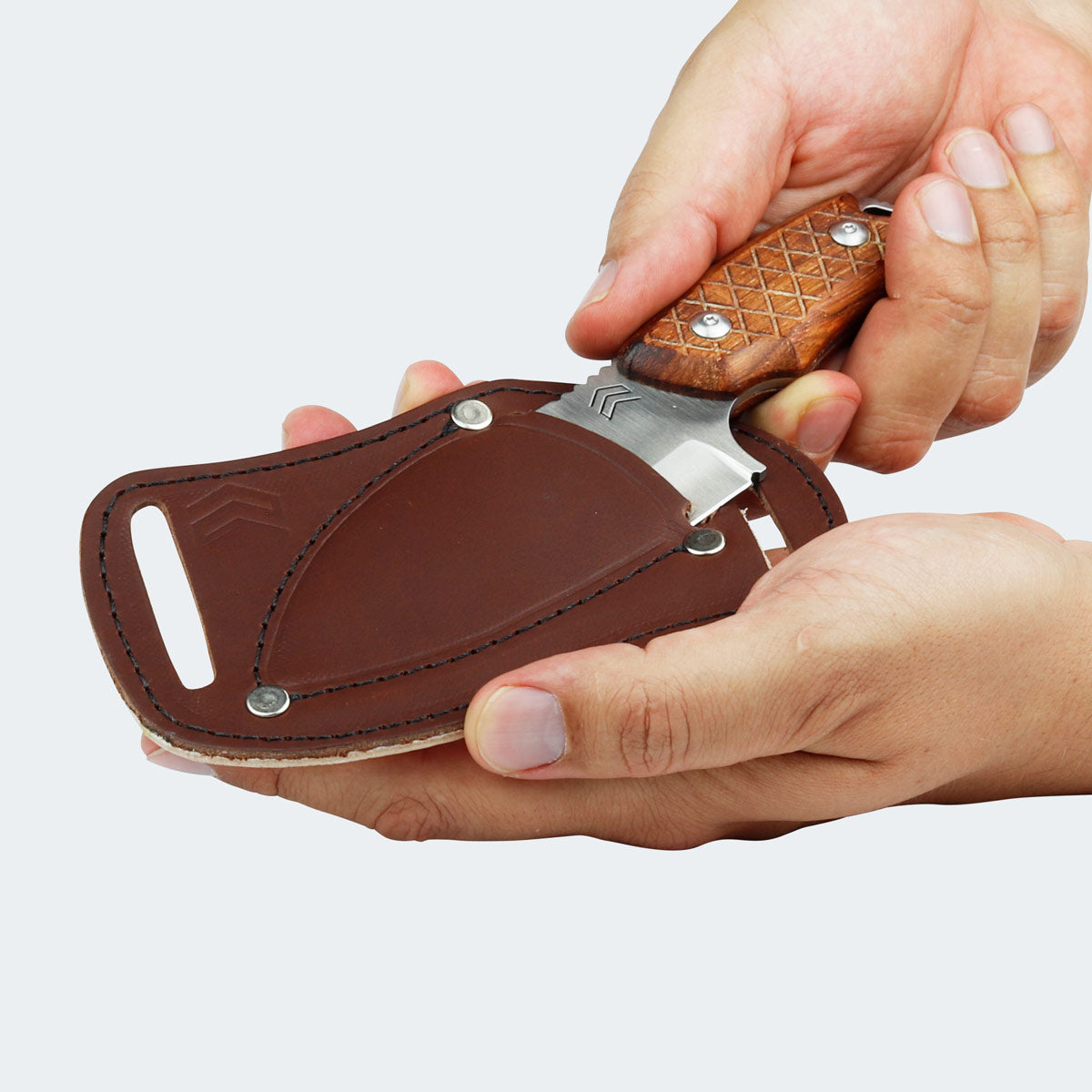 Nossas opções esbanjam qualidade, desde os formatos diferenciados até os detalhes do acabamento! Ah, e as lâminas de inox ficam protegidas pelas nossas bainhas de couro e são super fáceis de transportar! É só prender na calça que terá um acessório prático sempre te acompanhando.