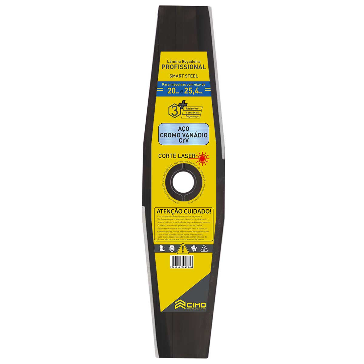 Nossa lâmina encaixa em qualquer tipo de roçadeira, pois conta com um mecanismo de adaptação para ser usado em máquinas com furos de 25,4 mm ou 20 mm.