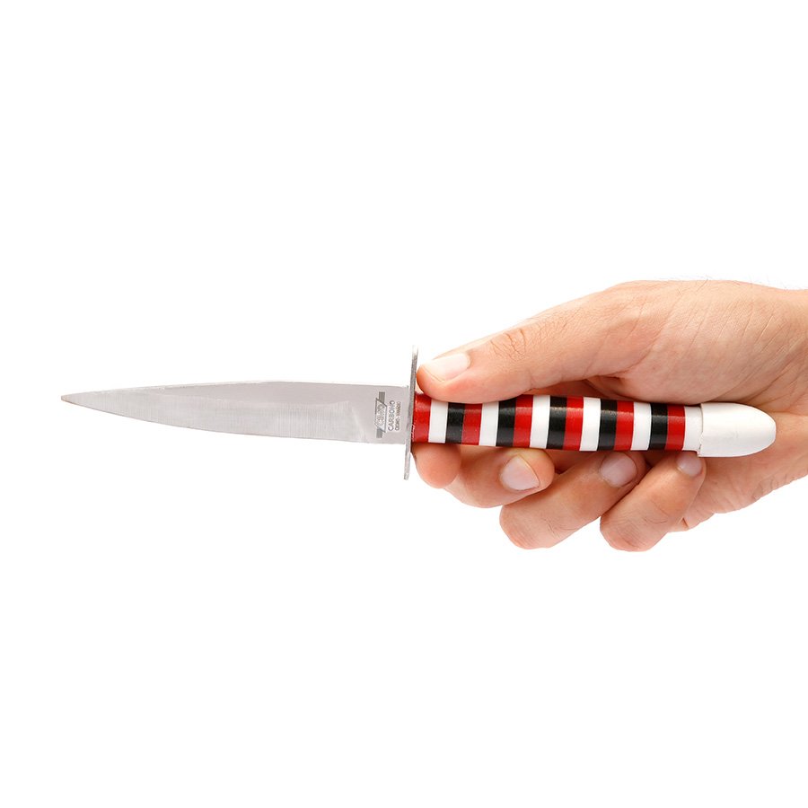Ela possui lâmina de aço inox resistente à oxidação, formato anatômico e, em muitos casos, bainha de proteção para facilitar o transporte em ambientes úmidos ou selvagens. Além disso, algumas versões possuem abridor de anzol ou cabo texturizado para melhor aderência, mesmo com as mãos molhadas.