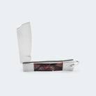 Canivete grande e robusto, sua lâmina em aço inox 420 possui formato anatômico e seu cabo tem acabamento em inox e acrílico, materiais especiais desenvolvido pela Cutelaria Cimo exclusivamente para cabos de facas e canivetes, com alto controle de qualidade resultando em um ótimo acabamento.