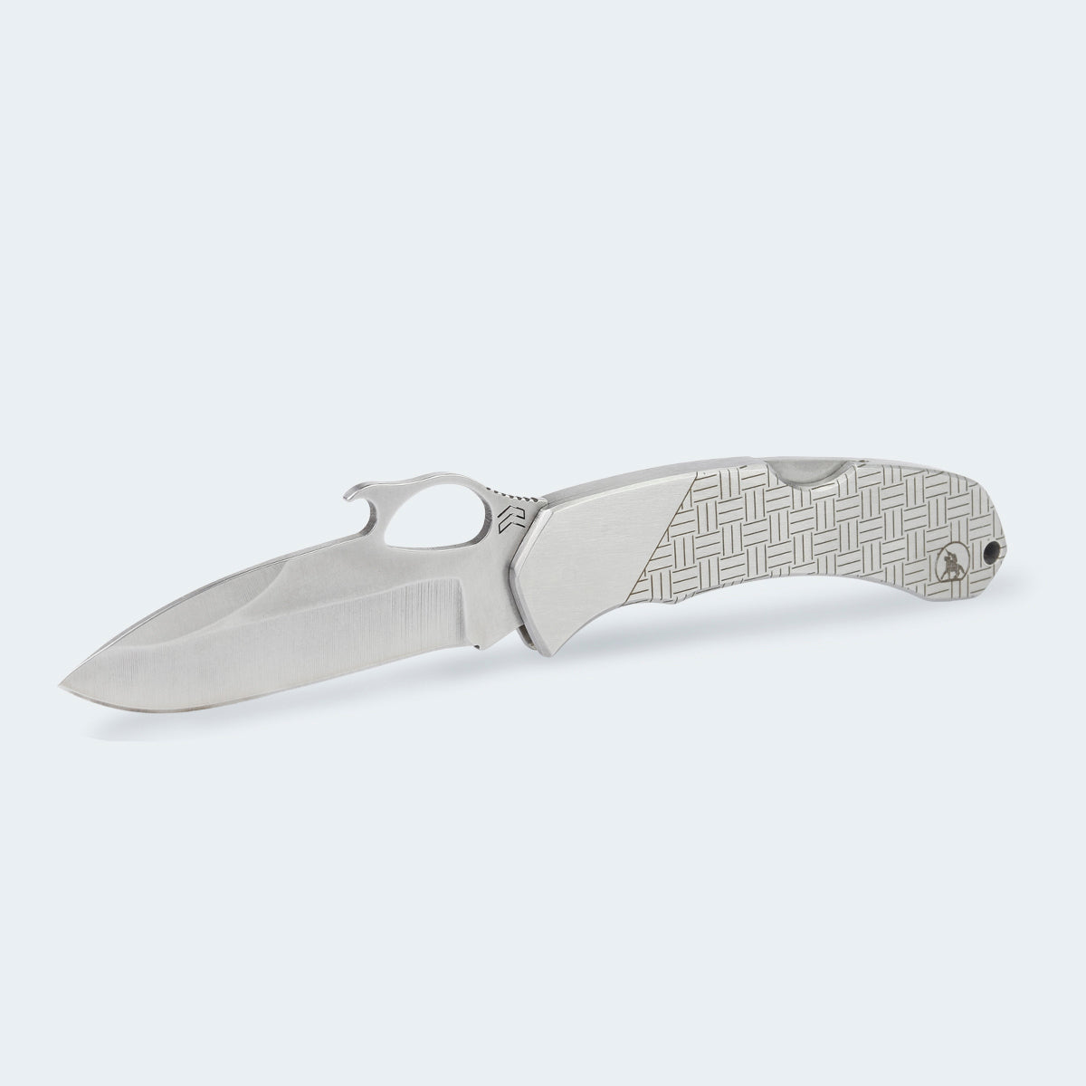 A Lâmina do Cody 79 tem um design Drop Point cortada a laser e fabricada em aço Inox temperado com isso a lâmina atinge durezas superiores retenção do fio de corte, O desbaste Hollow Grind duplo traz uma ponta acentuada e um ótimo perfil de corte é ideal para quem não dispensa força e dureza.
