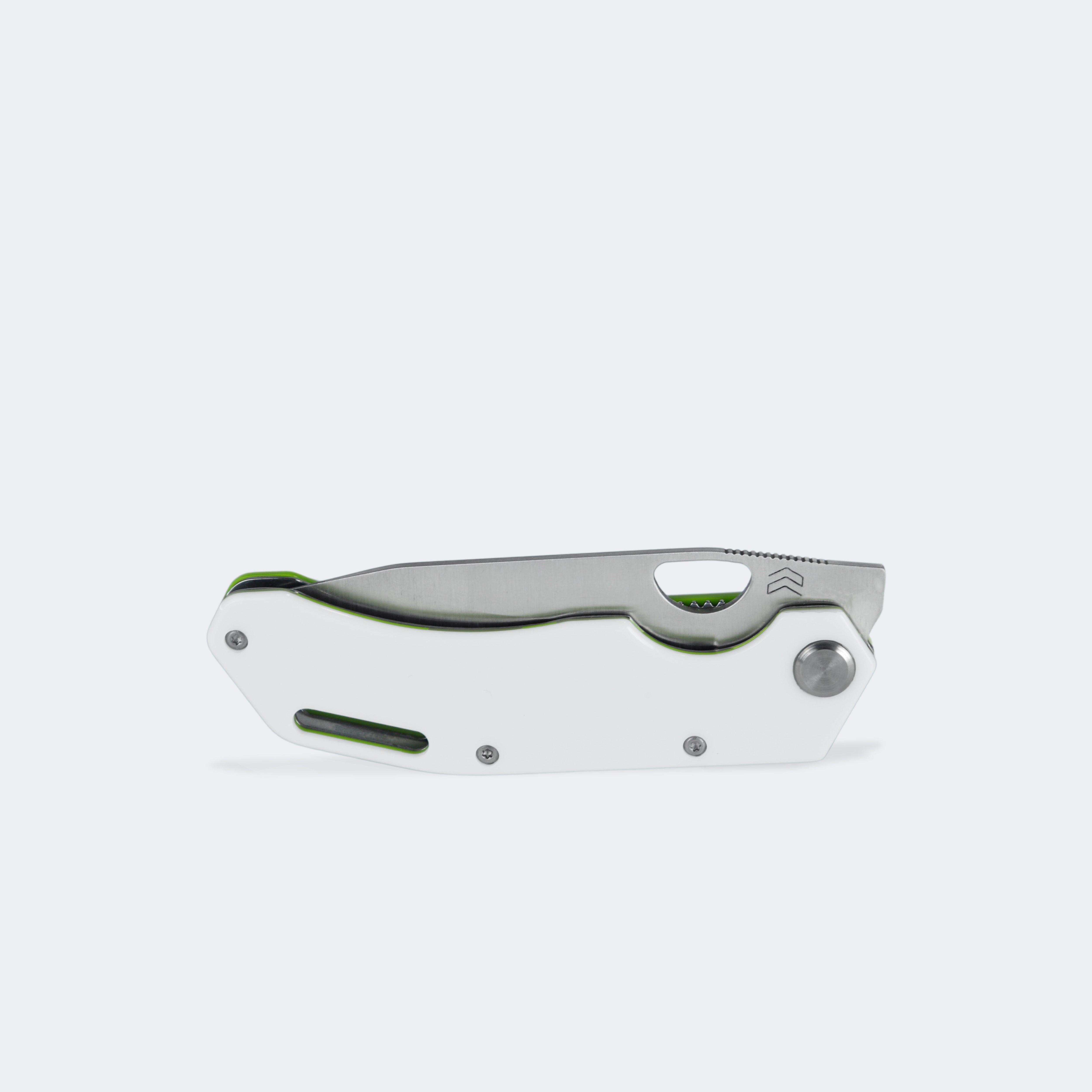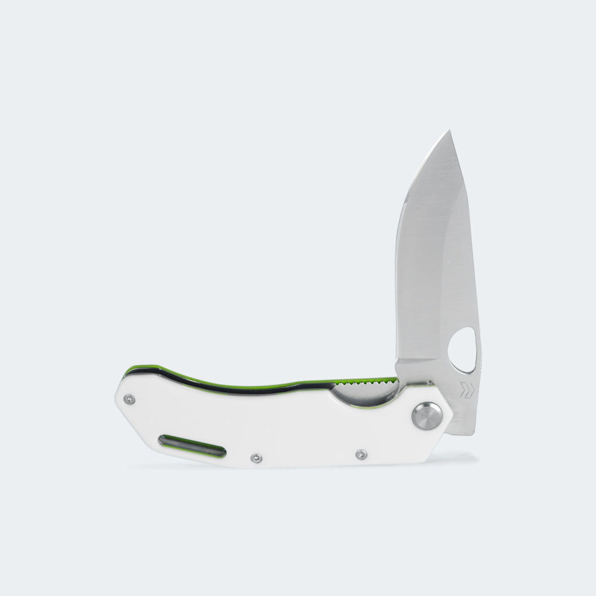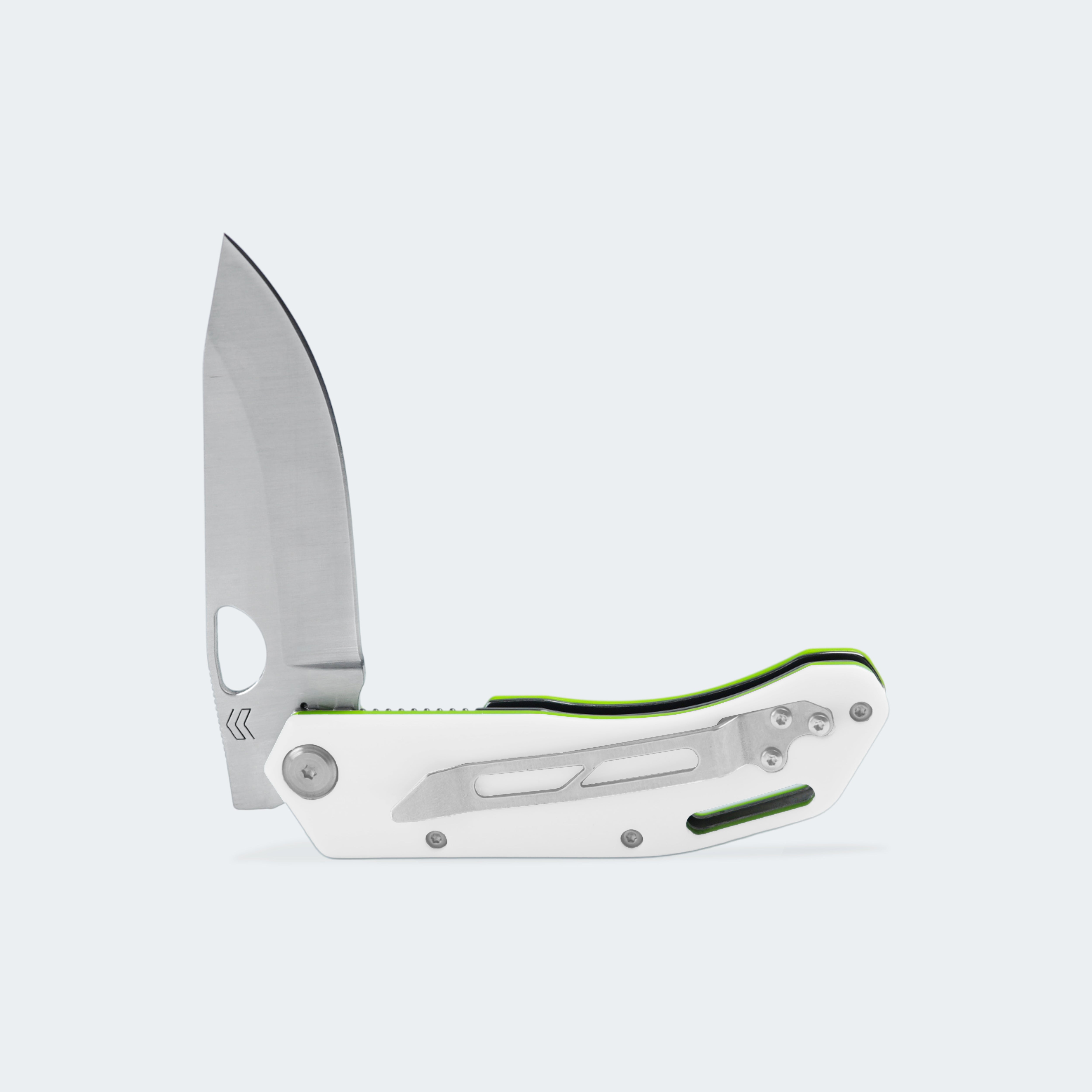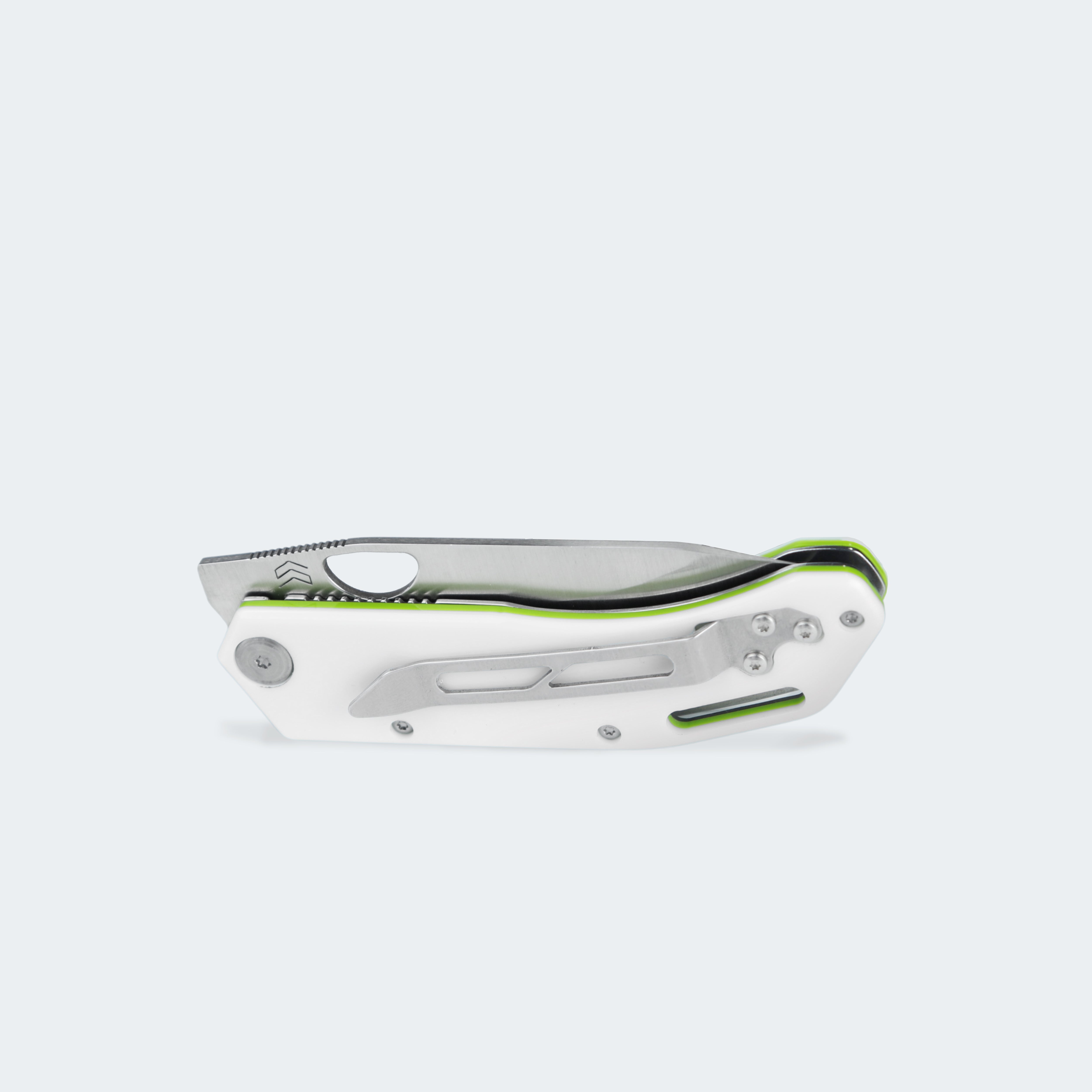 A lâmina do Canivete Cimo Rigiflex BioTech é confeccionada em aço inox temperado de alta qualidade, garantindo durabilidade e resistência excepcionais. Seu perfil clip point proporciona precisão nas tarefas mais delicadas e seu acabamento em branco com detalhes em verde confere um visual único e estiloso.
