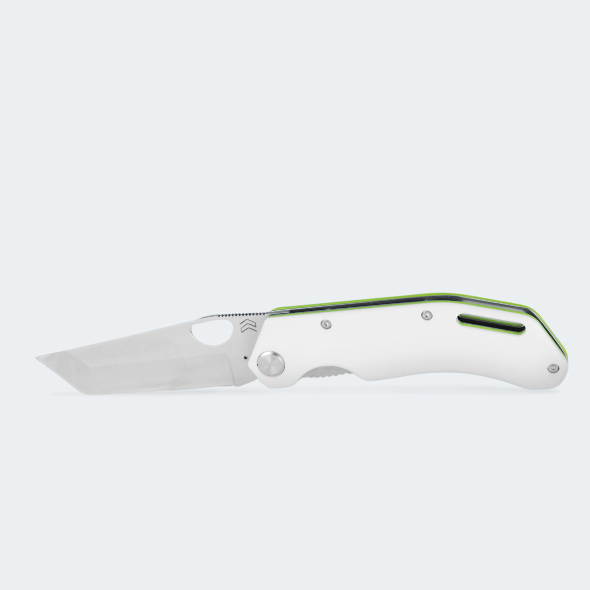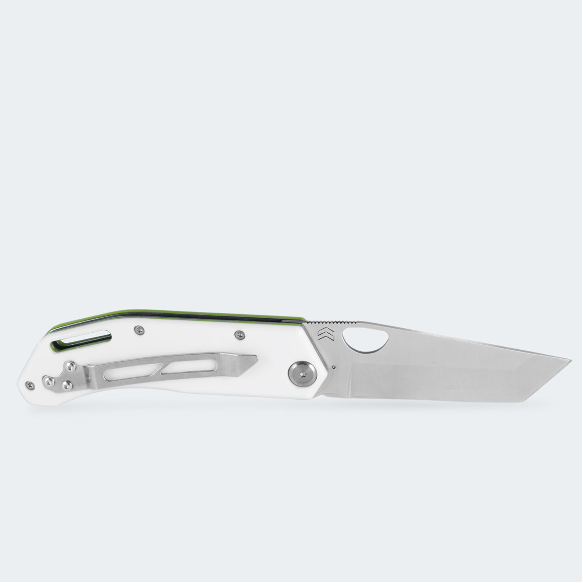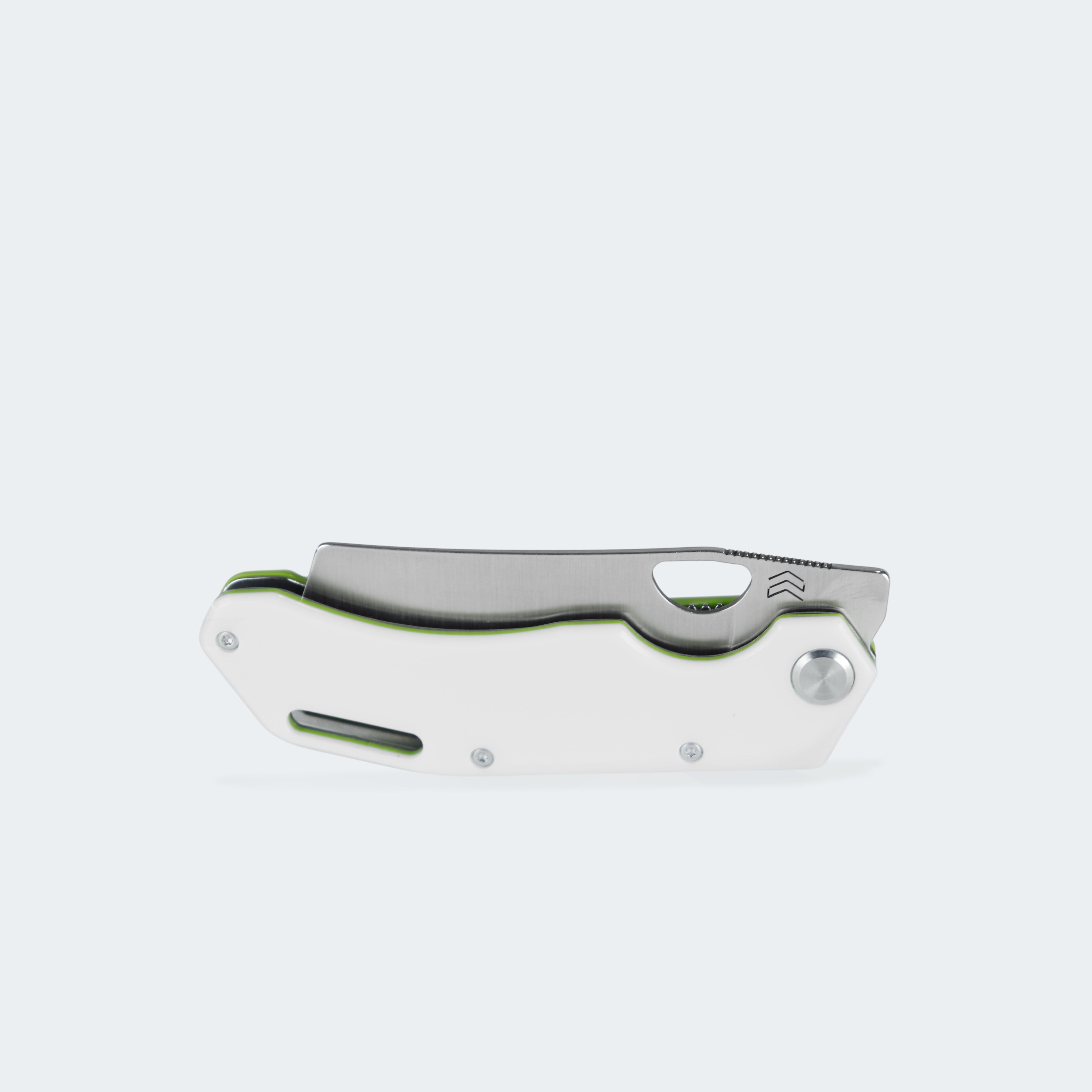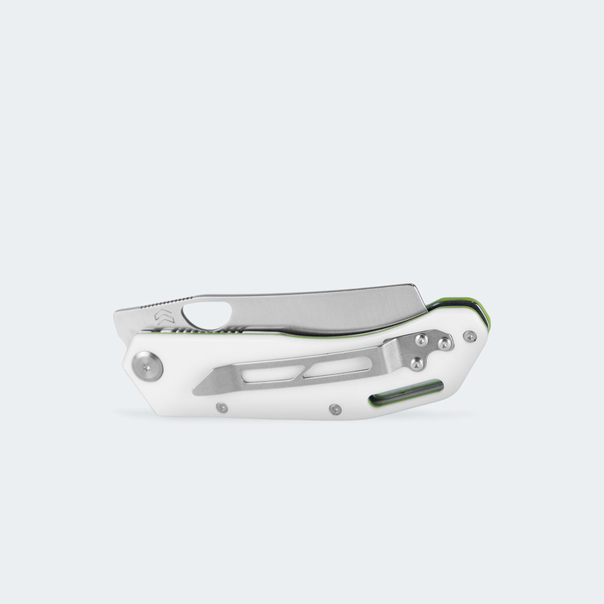 A lâmina do Canivete Cimo Rigiflex BioTech é confeccionada em aço inox temperado de alta qualidade, garantindo durabilidade e resistência excepcionais. Seu perfil clip point proporciona precisão nas tarefas mais delicadas e seu acabamento em branco com detalhes em verde confere um visual único e estiloso.