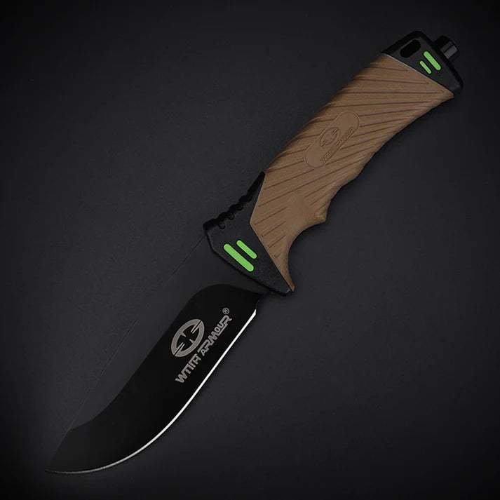 Esta faca de lâmina fixa foi projetada para oferecer confiabilidade e desempenho superior em todas as situações. Com lâmina de aço 440C e acabamento em titânio preto, garante resistência excepcional à corrosão, durabilidade no fio de corte e um visual marcante de alto nível.