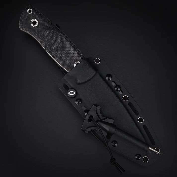 Mais do que uma lâmina, este set acompanha uma bainha em Kydex com sistema Tek-Lock, além de um afiador T-Punch, acendedor de fogo e paracord lanyard, garantindo que você esteja preparado para qualquer desafio, seja em aventuras outdoor ou em situações de sobrevivência.