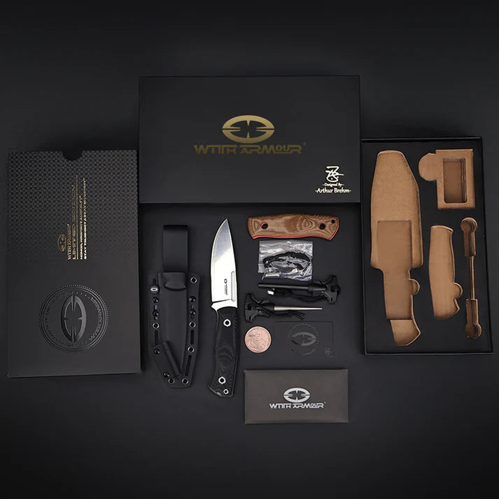 A Mercenary-ED é uma peça rara, criada como edição limitada e assinada pelo designer Arthur Brehm. Não se trata apenas de uma faca tática: este modelo foi projetado para colecionadores exigentes e aventureiros que buscam exclusividade, desempenho e presença em cada detalhe.