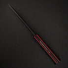 O cabo em SCFG10™ com fibra de carbono e detalhes em G10 vermelho, usinado em CNC, proporciona uma pegada firme, ergonômica e visualmente impactante — unindo resistência extrema e sofisticação estética.