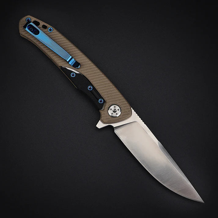 O cabo em G10, conhecido pela sua leveza e resistência, garante pegada firme, ergonômica e segura, mesmo em condições adversas.