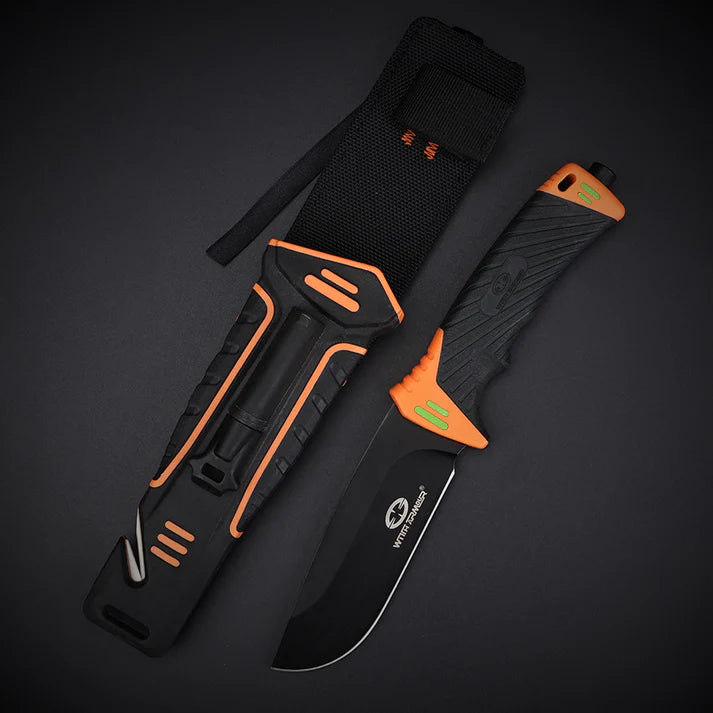 Acompanhada de uma bainha de dupla injeção equipada com acendedor de fogo e afiador, esta faca é mais do que uma ferramenta: é um kit completo de sobrevivência, pronta para uso em campo, trilhas, acampamentos ou situações táticas.